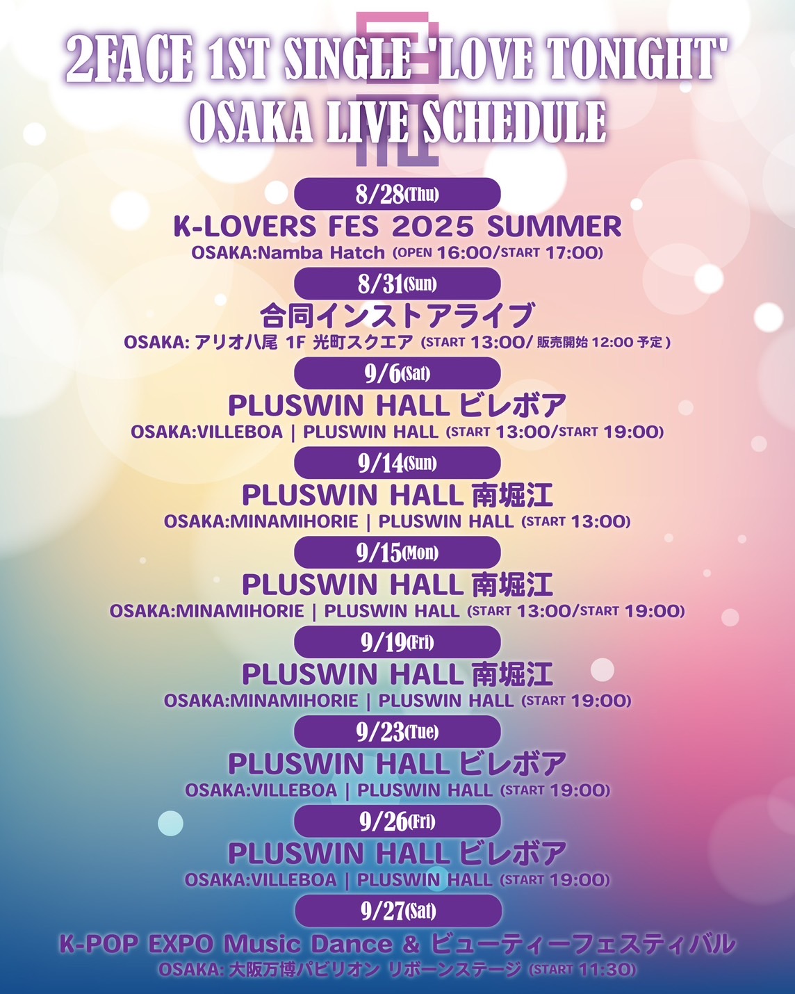 2FACE 1ST シングル「LOVE TONIGHT」 発売記念!大阪LIVE SCHEDULE📢